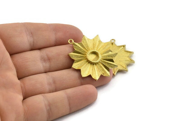 Brass Badge Charm, Raw Brass Rosette Charm Pendants With 1 Loop, Earrings (37x33mm) N0732