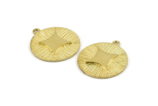 Brass Badge Charm, Raw Brass Rosette Charm Pendants With 1 Loop, Earrings, Findings (25mm) N0788