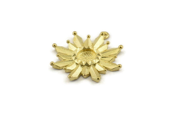 Raw Brass Rosette Charms With 1 Loop - Pad Size : 6mm