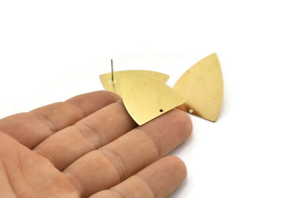 Brass Badge Earring, 8 Raw Brass Rosette Stud Earrings With 1 Hole (28x25x0.50mm) D1641 A2202