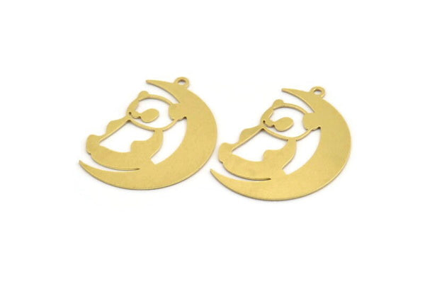 Raw Brass Panda Bear And Crescent Moon Shaped Charms With 1 Loop