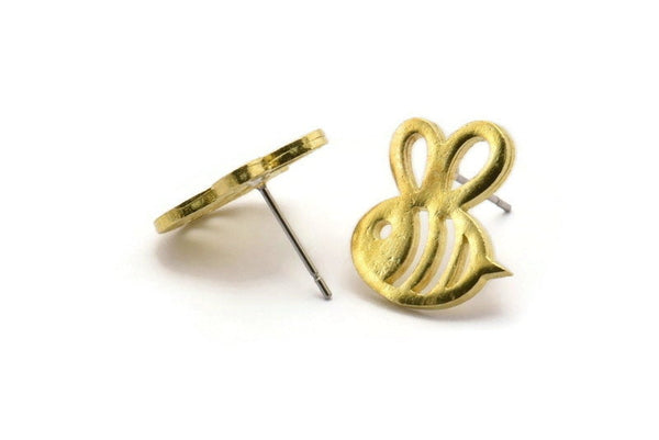Raw Brass Bee Stud Earrings