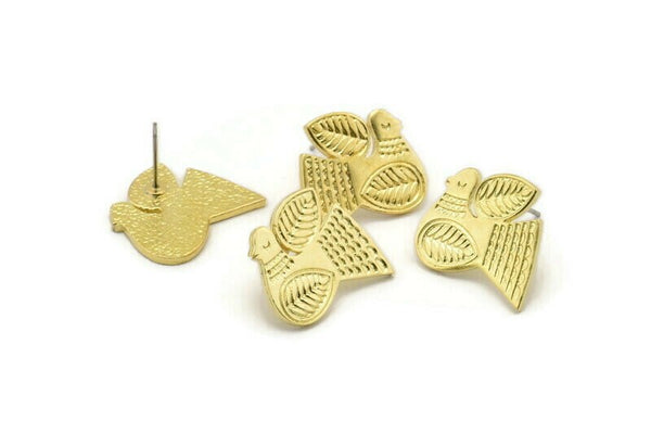 Brass Bird Earring, 2 Raw Brass Bird Stud Earrings (19x17x1.2mm) N1690