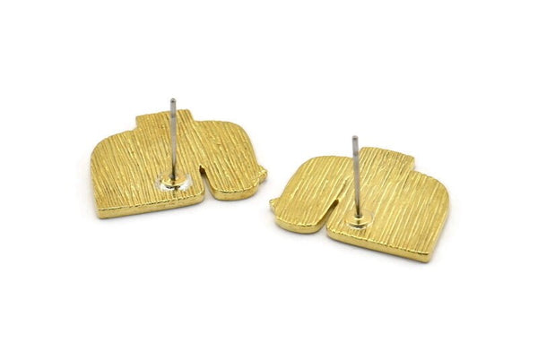 Brass Bird Earring, 2 Raw Brass Bird Stud Earrings (20x16x1.5mm) N1689