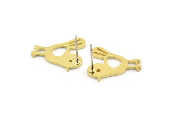 Brass Bird Earring, 8 Raw Brass Bird Stud Earrings (18x17x1mm) A3764