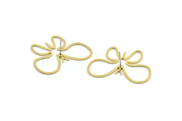 Brass Butterfly Earring, 6 Raw Brass Butterfly Shaped Stud Earrings (30x37x0.80mm) A4934 A6184