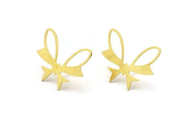 Brass Butterfly Earring, 8 Raw Brass Butterfly Shaped Stud Earrings (22x27x0.80mm) A4936 A6057