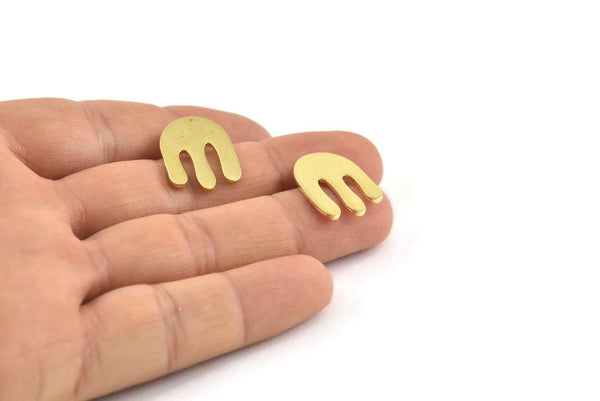 Brass Cactus Earring, 4 Raw Brass Cactus Stud Earrings (19x15mm) N1437