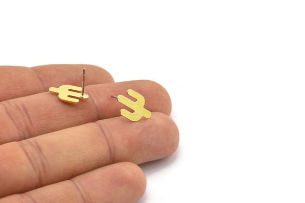 Brass Cactus Earrings, 12 Raw Brass Cactus Stud Earrings (14x9x0.90mm) M02614 A2591