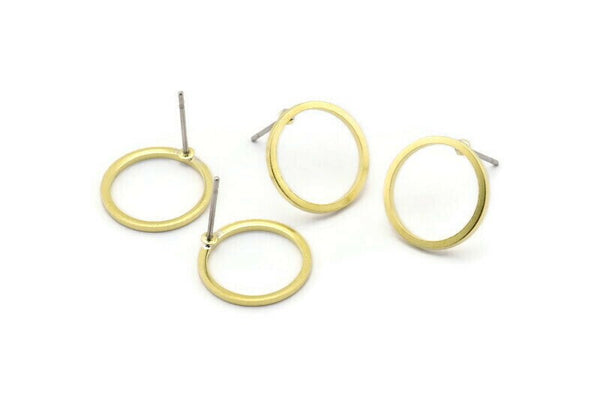 Brass Circle Earring, 10 Raw Brass Circle Stud Earrings (14x1x1mm) BS 1099 A2367