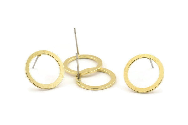 Brass Circle Earring, 10 Raw Brass Circle Stud Earrings (16x0.90mm) D1482 A1381