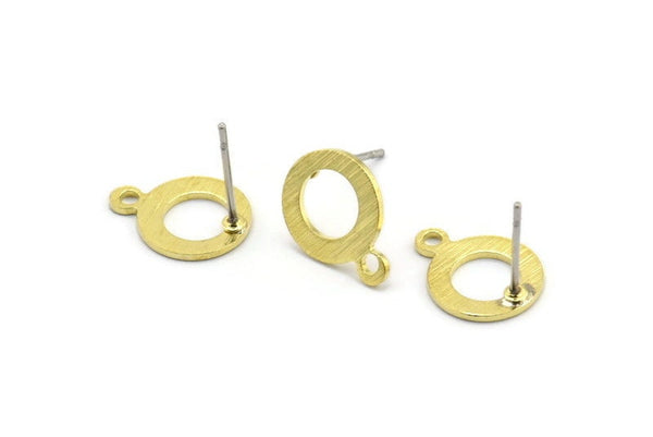 Textured Raw Brass Circle Stud Earrings With 1 Loop