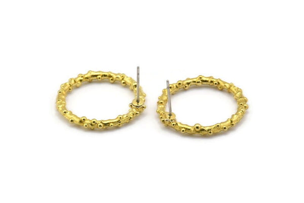Raw Brass Circle Stud Earrings