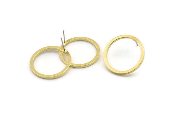Brass Circle Earring, 6 Raw Brass Circle Stud Earrings (25x1.5x1.5mm) E009 A1932