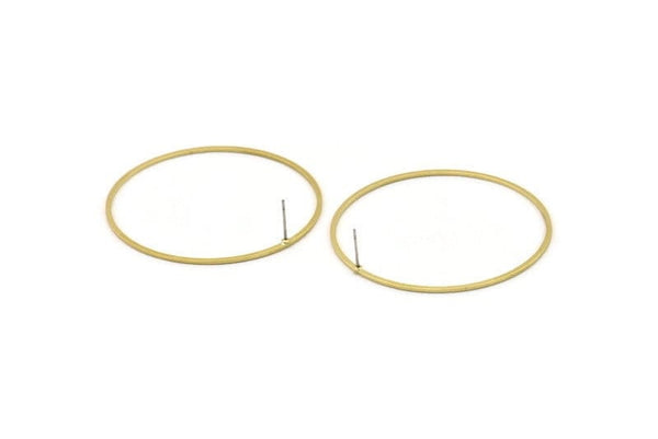 Brass Circle Earring, 6 Raw Brass Circle Stud Earrings (52x1.3x1mm) A6095 A3224