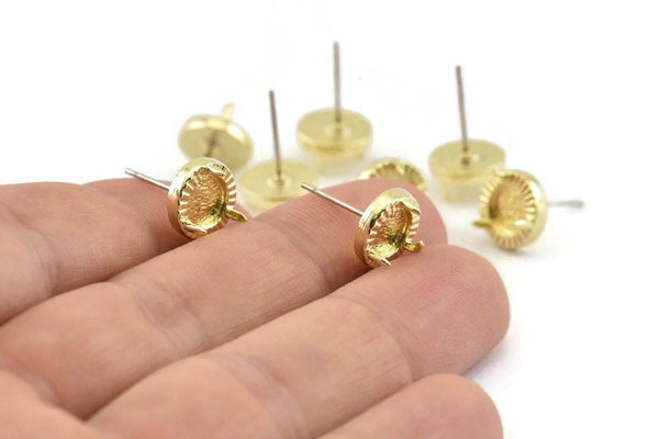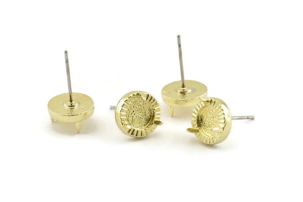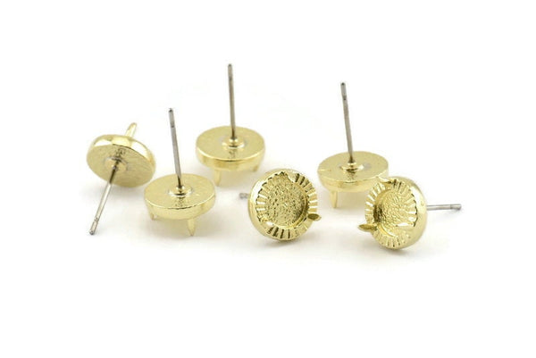 Raw Brass 3 Claw Stud Earrings - Stone Setting - Pad Size 6mm