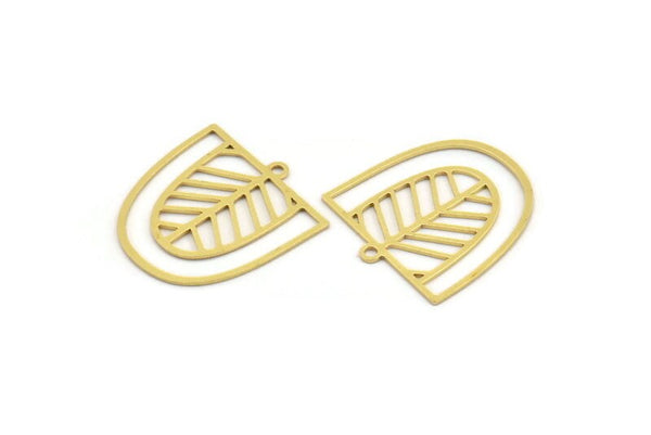 Brass D Shaped Charm, 12 Raw Brass D Shaped Charms With 1 Loop, Earrings, Findings (24x22.5x0.60mm) A4414