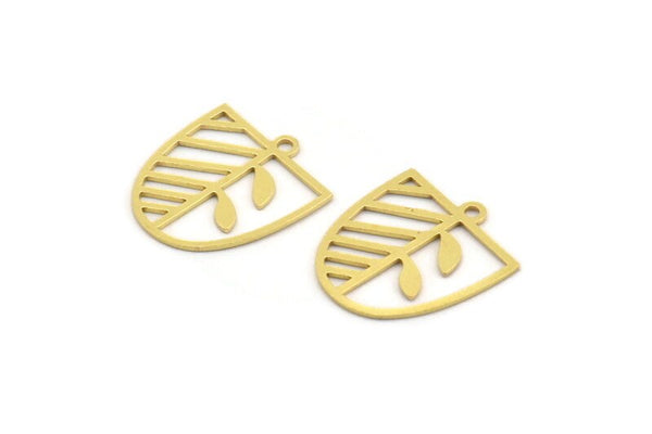 Brass D Shaped Charm, 24 Raw Brass D Shaped Charms With 1 Loop, Earrings, Findings (18x16x0.60mm) A4403