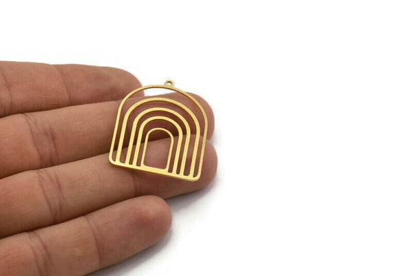 Brass D Shaped Charm, 6 Raw Brass D Shaped Charms With 1 Loop, Earrings, Findings (37x28x0.60mm) A6244