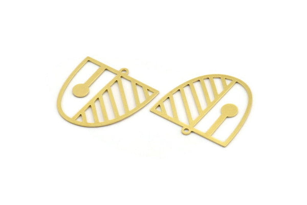 Brass D Shaped Charm, 8 Raw Brass D Shaped Charms With 1 Loop, Earrings, Findings (27x27x0.60mm) A4431