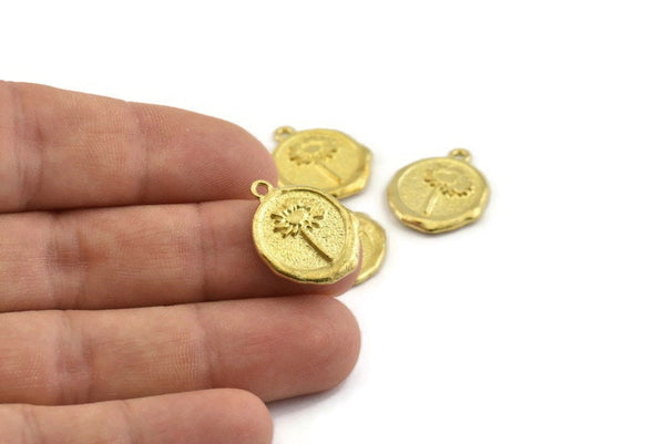 Brass Daisy Charm, Raw Brass Flower Charm Earrings With 1 Loop, Pendants, Findings (16x18mm) N0889