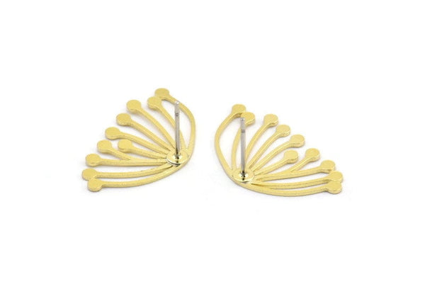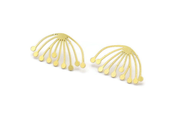 Brass Dandelion Earring, 8 Raw Brass Taraxacum Shaped Stud Earrings (14x24x0.60mm) A2939
