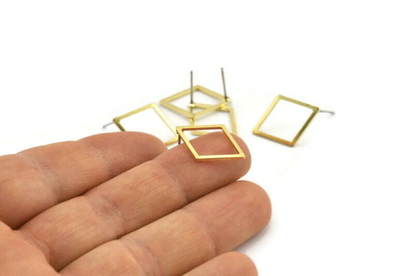 Brass Diamond Earring, 10 Raw Brass Diamond Stud Earrings (20x15x0.90mm) A1661 A1711