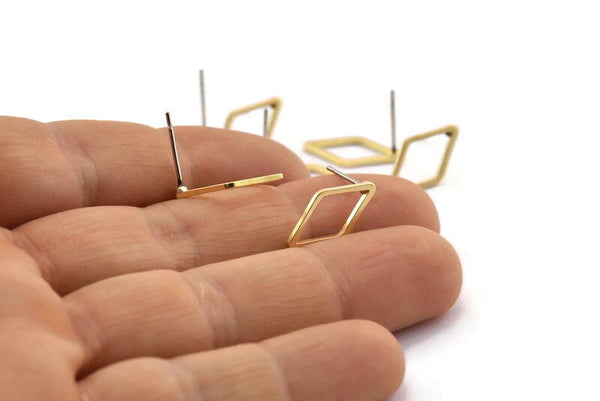 Brass Diamond Earring, 12 Raw Brass Diamond Stud Earrings (10x16x1mm) D0058 A2064