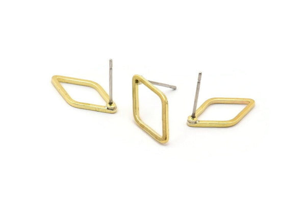 Brass Diamond Earring, 12 Raw Brass Diamond Stud Earrings (9x17x1mm) D0029 A2049