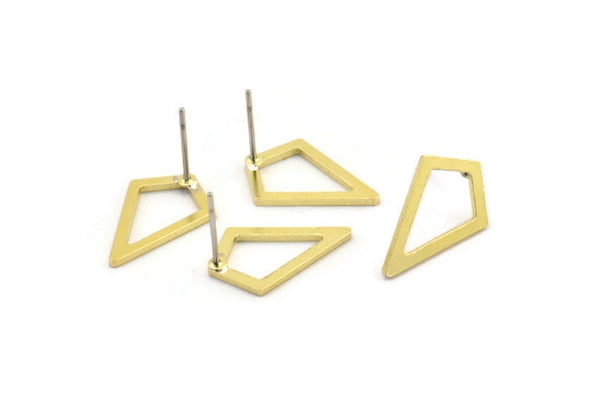 Brass Diamond Earring, 8 Raw Brass Diamond Shaped Stud Earrings (17x12x1mm) A3787