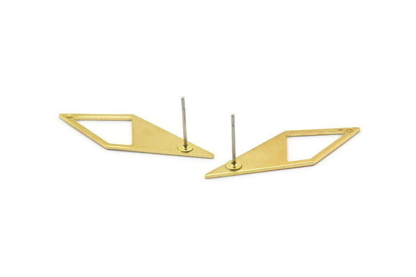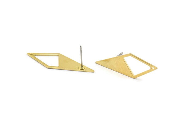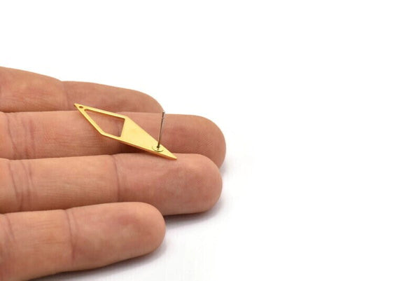 Brass Diamond Earring, 8 Raw Brass Rhombus Stud Earrings With 1 Hole, Earrings (33x12x10,80m) D0670 A1818