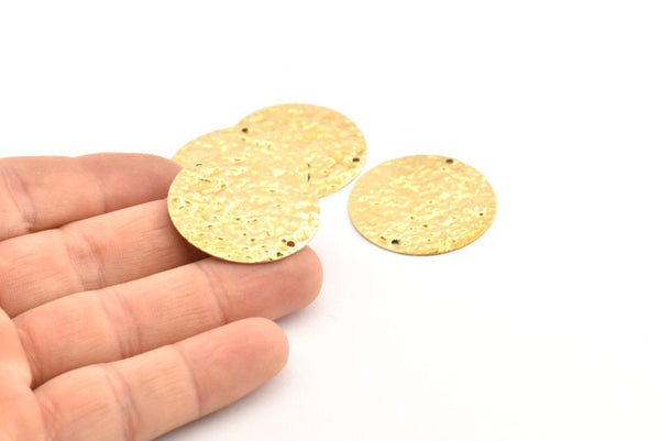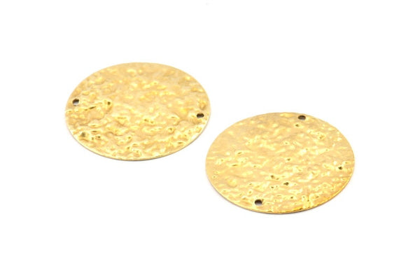 Brass Disc Charm, 10 Hammered Raw Brass Round Connectors With 2 Holes, Earrings, Findings (30x0.70mm) D1028