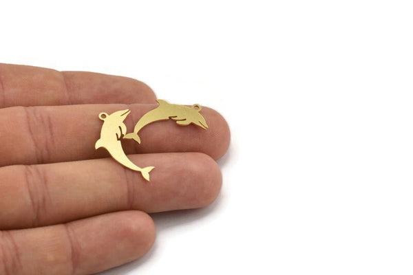 Brass Dolphin Charm, 24 Raw Brass Dolphin Shaped Charms With 1 Loop, Earring Charm Findings (25.5x14x0.60mm) A5216