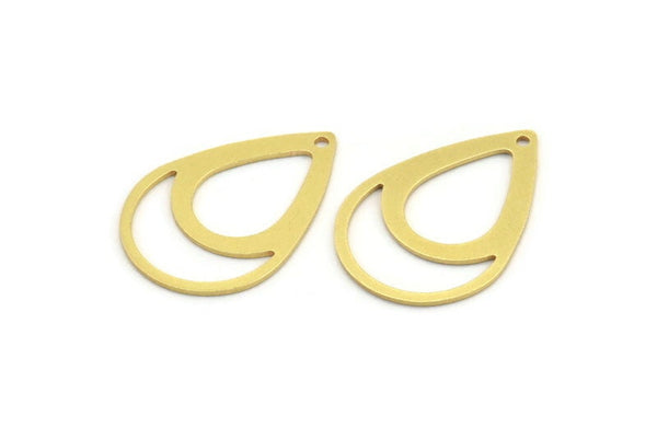Brass Drop Charm, 10 Raw Brass Drop Charms With 1 Hole, Earrings, Findings (29x21x0.80mm) A4224