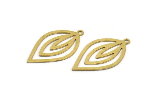 Brass Drop Charm, 12 Raw Brass Drop Charms With 1 Loop, Earrings, Findings (30x17x0.60mm) A5094