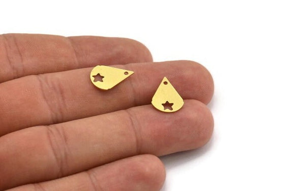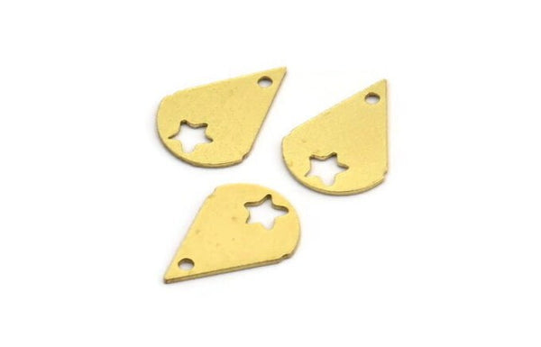 Brass Drop Charm, 12 Raw Brass Drop Pattern Star Shaped With 1 Loop, Earrings, Findings (15x11x0.60mm) A5439