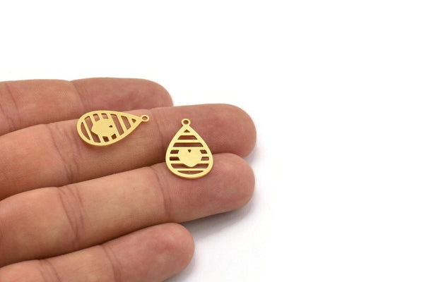 Raw Brass Patterned Drop Shape Charms With 1 Loop