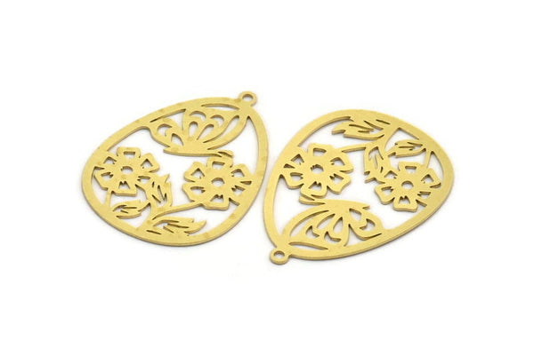 Brass Drop Charm, 4 Raw Brass Butterfly And Flower Patterned Charms With 1 Loop, Earring Findings (38.5x29x0.60mm) A5683