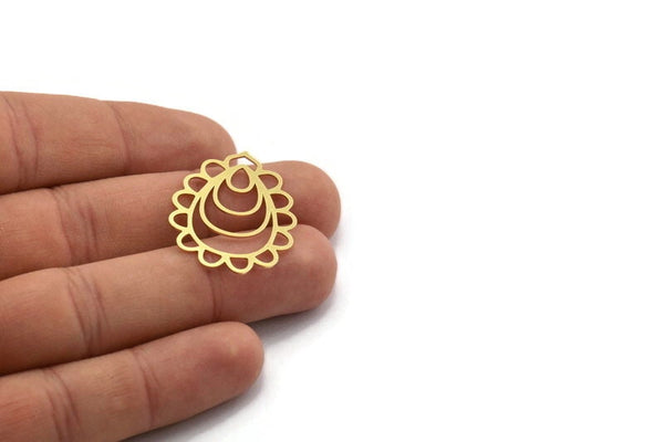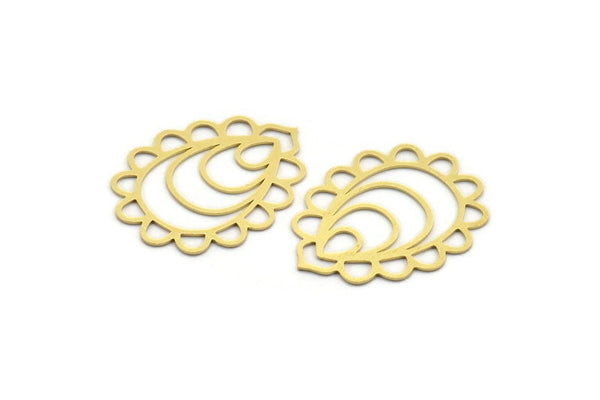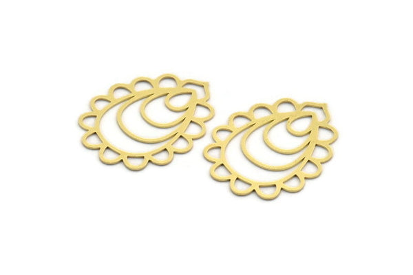 Brass Drop Charm, 4 Raw Brass Drop Charms, Earrings, Findings (32.5x25x0.60mm) A6538