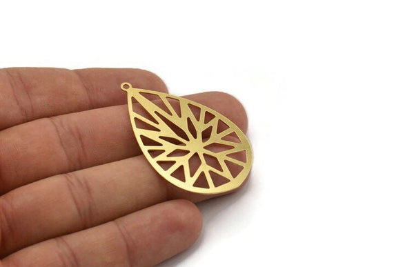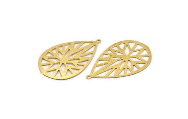 Brass Drop Charm, 4 Raw Brass Drop Charms With 1 Loop, Earrings, Findings (49x31x0.60mm) A4960