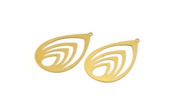 Brass Drop Charm, 4 Raw Brass Drop Charms With 1 Loop, Earrings, Findings (51x34x0.60mm) A4959