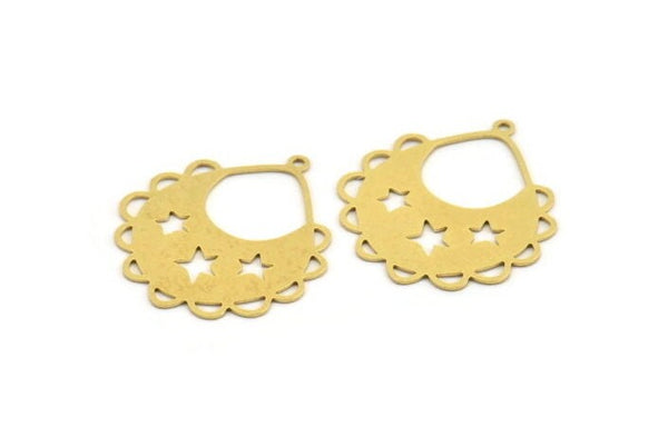 Brass Drop Charm, 6 Raw Brass Drop Charms With 1 Loop, Earrings, Findings (32x28x0.60mm) A5314