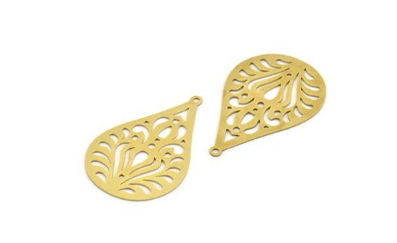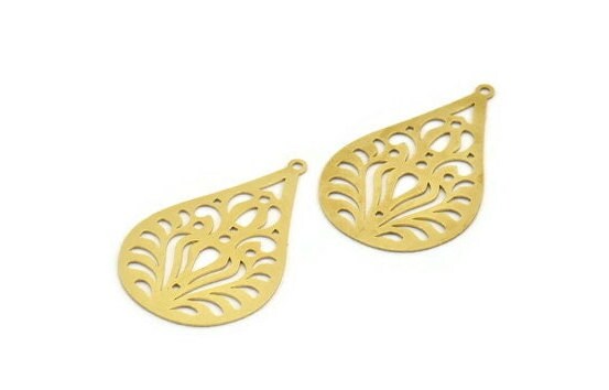 Brass Drop Charm, 6 Raw Brass Drop Charms With 1 Loop, Earrings, Findings (40x26x0.60mm) A6006