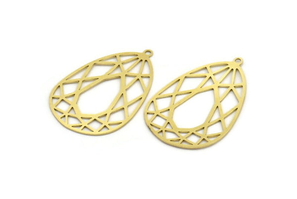 Brass Drop Charm, 6 Raw Brass Drop Charms With 1 Loop, Earrings, Findings (42x28x0.60mm) A4574