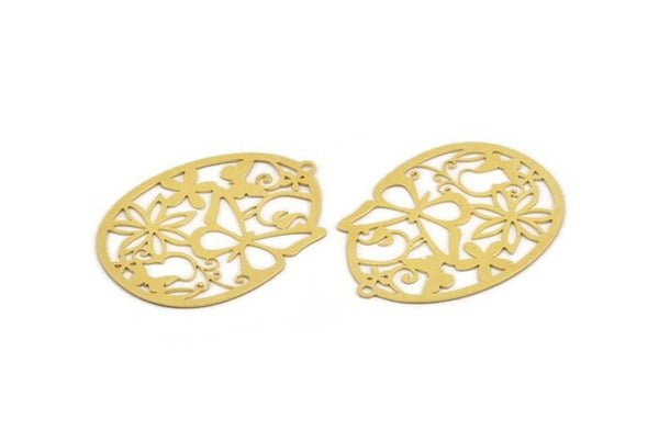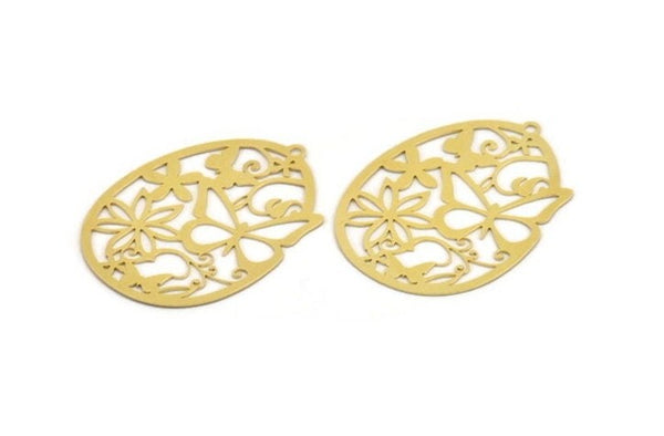 Brass Drop Charm, 6 Raw Brass Drop Pattern Butterfly Shaped With 1 Loop, Earrings, Findings (42x31x0.40mm) A5342