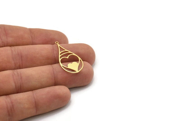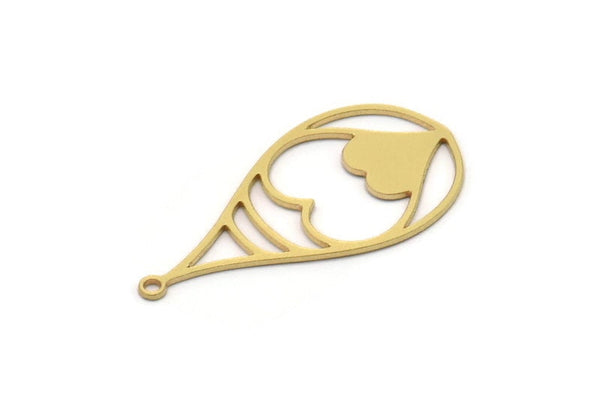 Brass Drop Charm, 6 Raw Brass Heart Patterned Charms With 1 Loop, Earring Findings (32x16x0.60mm) SMP1034