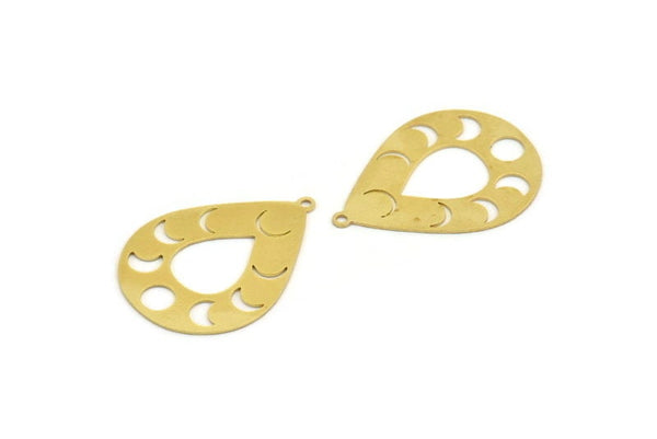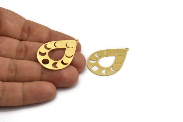 Brass Drop Charm, 6 Raw Brass Moon Phases Patterned Drop Shape Charms With 1 Loop, Earrings, Findings (35x26x0.60mm) A5999