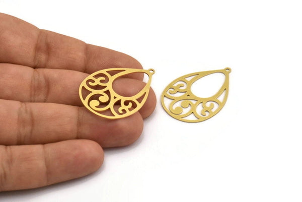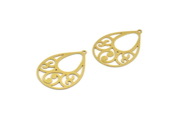 Brass Drop Charm, 8 Raw Brass Drop Charms With 1 Loop, Earrings, Findings (36x26x0.60mm) A6000