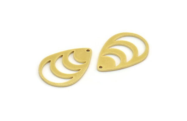 Brass Drop Charm, 8 Raw Brass Moon Patterned Drop Shape Charms With 1 Hole, Earrings, Findings (25x17x1mm) A6163