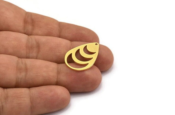 Raw Brass Moon Patterned Drop Shape Charms With 1 Hole